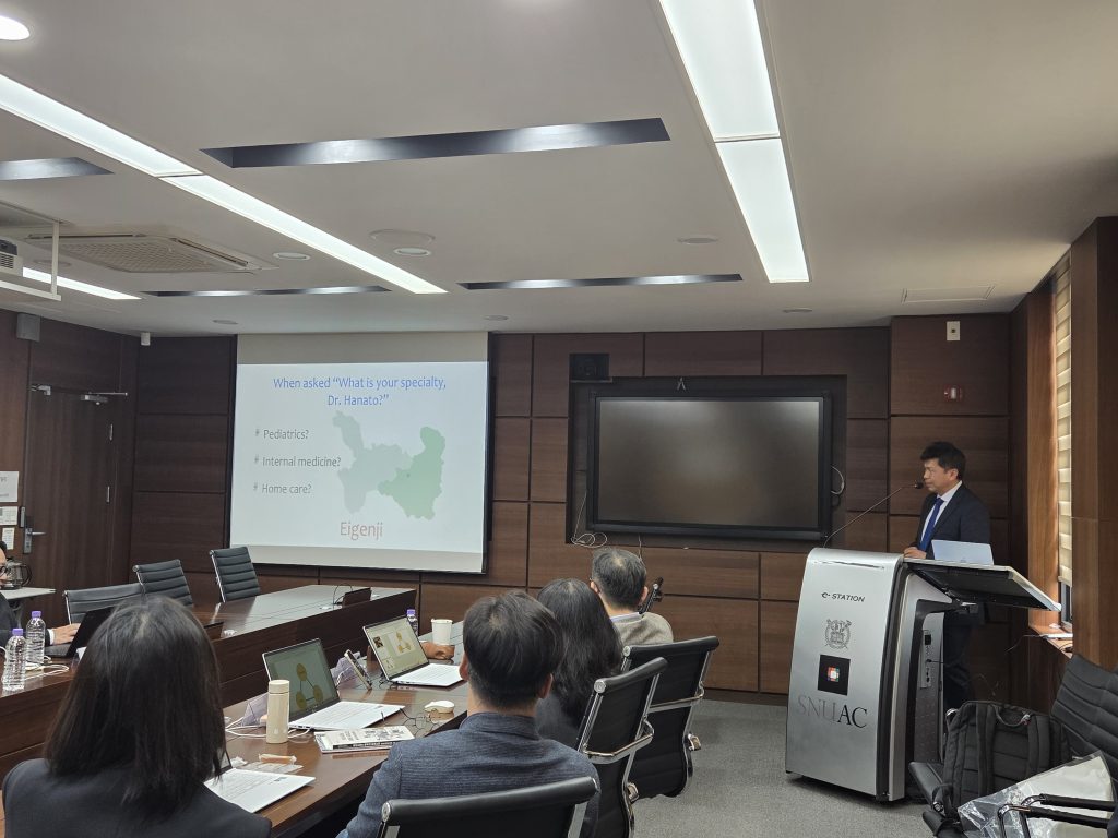다음으로 일본 시가현 에이겐지 마을 클리닉의 Takashi Hanato원장(우측)은 “In Order to Keep Living in a Familiar Environment with a Sense of Security: All Community Care in Eigenji”를 제목으로 방문 진료와 공동체 기반 돌봄의 사례를 소개하였다. 에이겐지는 인구가 적은 농촌지역으로 의료 인프라의 부족과 돌봄 문제에 직면하고 있으며 에이겐지 마을 클리닉은 환자들의 방문 진료와 공동체 돌봄을 실천하고 있다. Hanato 원장은 특히 이 발표에서 의료와 건강의 개념이 병의 치료를 중심으로 하는 것이 아니라 당사자 개개인이 중요하게 여기는 가치와 즐거움이 중심이 되어야 하며, 이를 위해서는 의사만이 아니라 공동체 전체가 돌봄에 참여하는 모델(마루고토(まるごと, 丸ごと))이 필요함을 역설하였다. 나아가 돌봄을 수행하는 이들은 자신이 살아가는 지역이 자신의 전공이 되어야 함을 주장하였다.