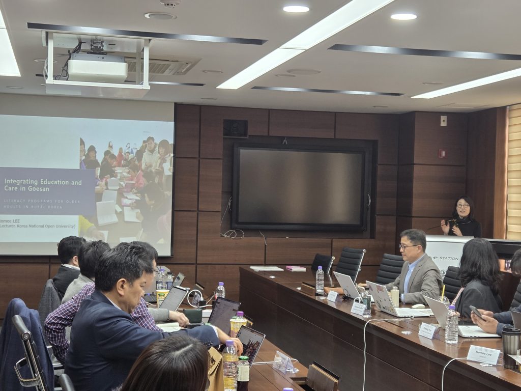이로미 한국방송통신대학 교수는 시민사회 프로그램 참여 연구원으로 “Integrating Education and Care in Goesan: Literacy Programs for Older Adults in Rural Korea”을 제목으로 발표를 이어갔다. 이로미 교수는 먼저 문해교육 및 교육의 의의와 이에 관여해 온 정부주도 정책의 한계 사이의 긴장을 소개하였다. 이후 충북 괴산의 “두레” 사례를 통하여 지속가능한 문해교육과 교육을 통한 돌봄의 가능성을 모색하였다. 두레는 문해교육을 통로로 주변화된 노인, 특히 농촌지역의 여성 노인이 심리적, 감정적 지지와 함꼐 사회적 인정을 바탕으로 고립을 극복하며 결과적으로 하나의 역할을 가진 공동체의 구성원으로 통합되어가는 중요한 사례로 볼 수 있다.